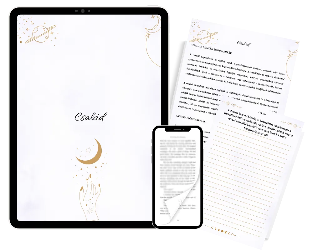 A napló célja, hogy biztonságos és strukturált módot biztosítson a mélyebb önismeret eléréséhez. Gyakorlati feladatokat, kérdéseket és útmutatásokat kínál, amelyek segítségével fokozatosan szembenézhetsz rejtett érzéseiddel és elnyomott részeiddel. A napló lépésről lépésre vezet végig a folyamaton, hogy feltárhasd a múltad befolyását a jelenlegi életedre és felszabadíthasd a rejtett energiáidat.